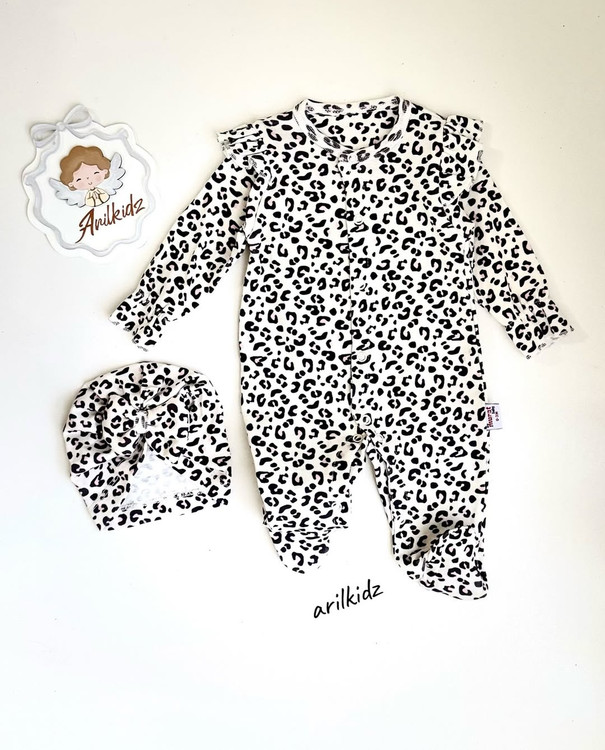 سرهمی جورابدار نوزادی طرح پلنگی کد۳۲