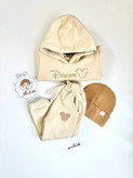 ست هودی و شلوار دورس سه نخ تو کرکی با کیفیت عالی و مناسب برای کودک تا ۳ سال. این ست شامل جاگر اسلش دورنگ و کلاه فری سایز است.