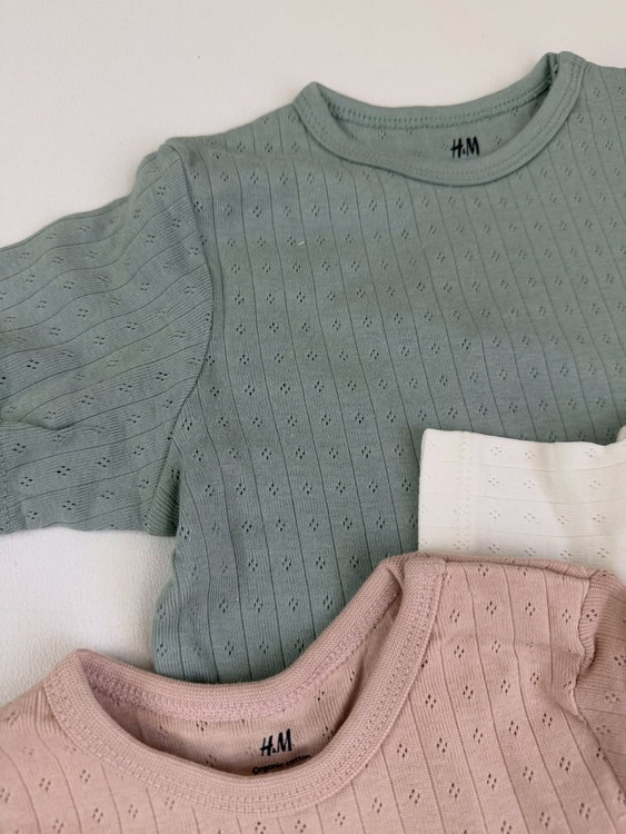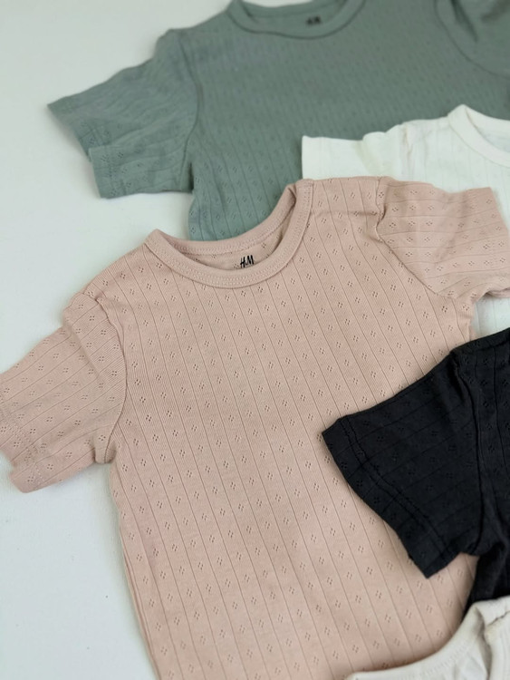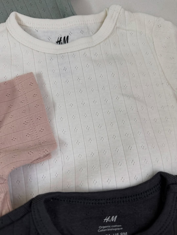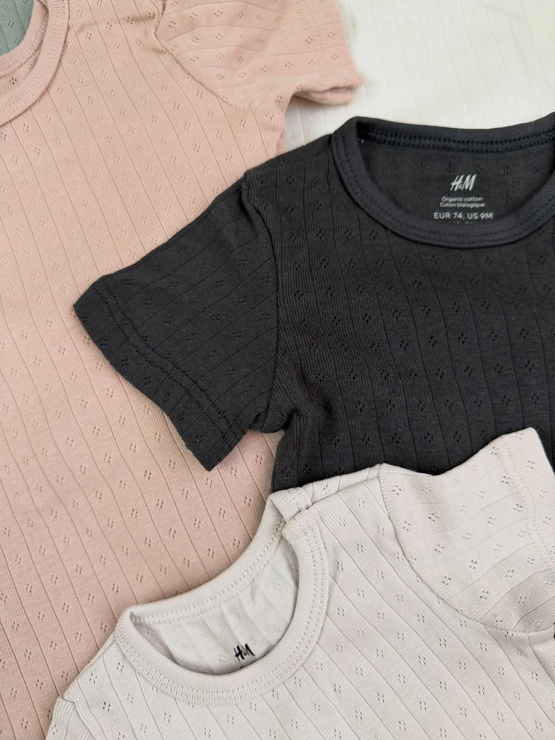زیر دکمه های برند اچ اند ام که طرح سوزنی دارد و آستین کوتاه. این محصول در سایزهای مختلف عرضه میشود.