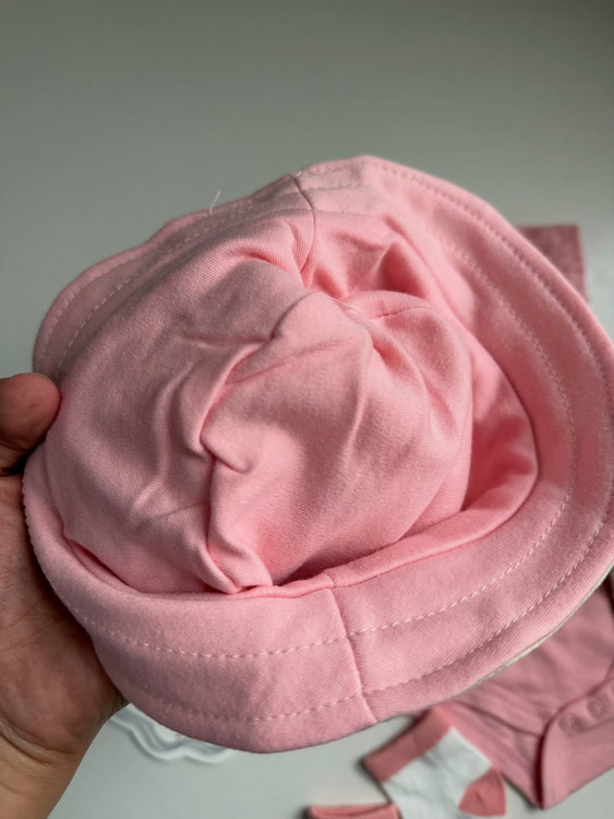 این ست چهار تکه شامل بادی، شورتک، کلاه دو رو و جوراب با کیفیت مناسب برای نوزادان