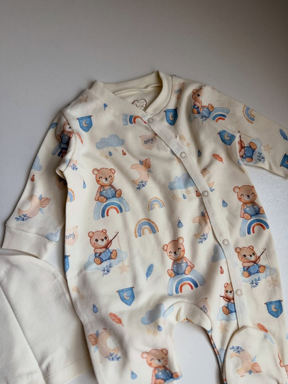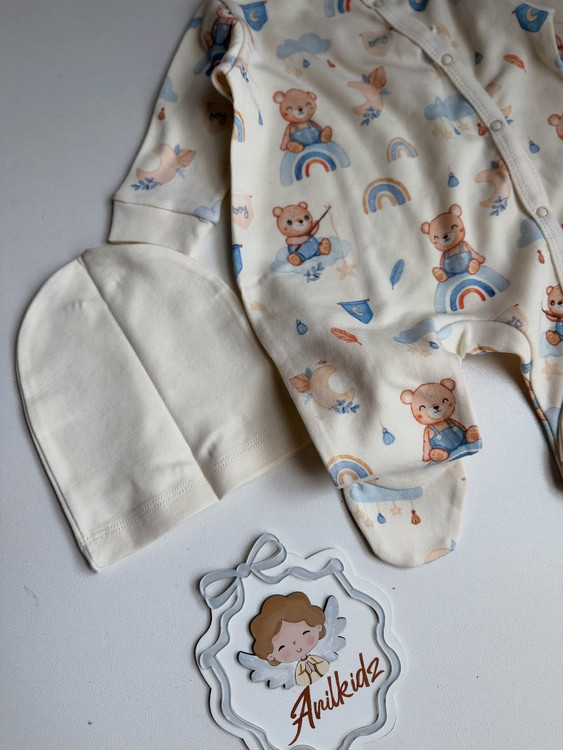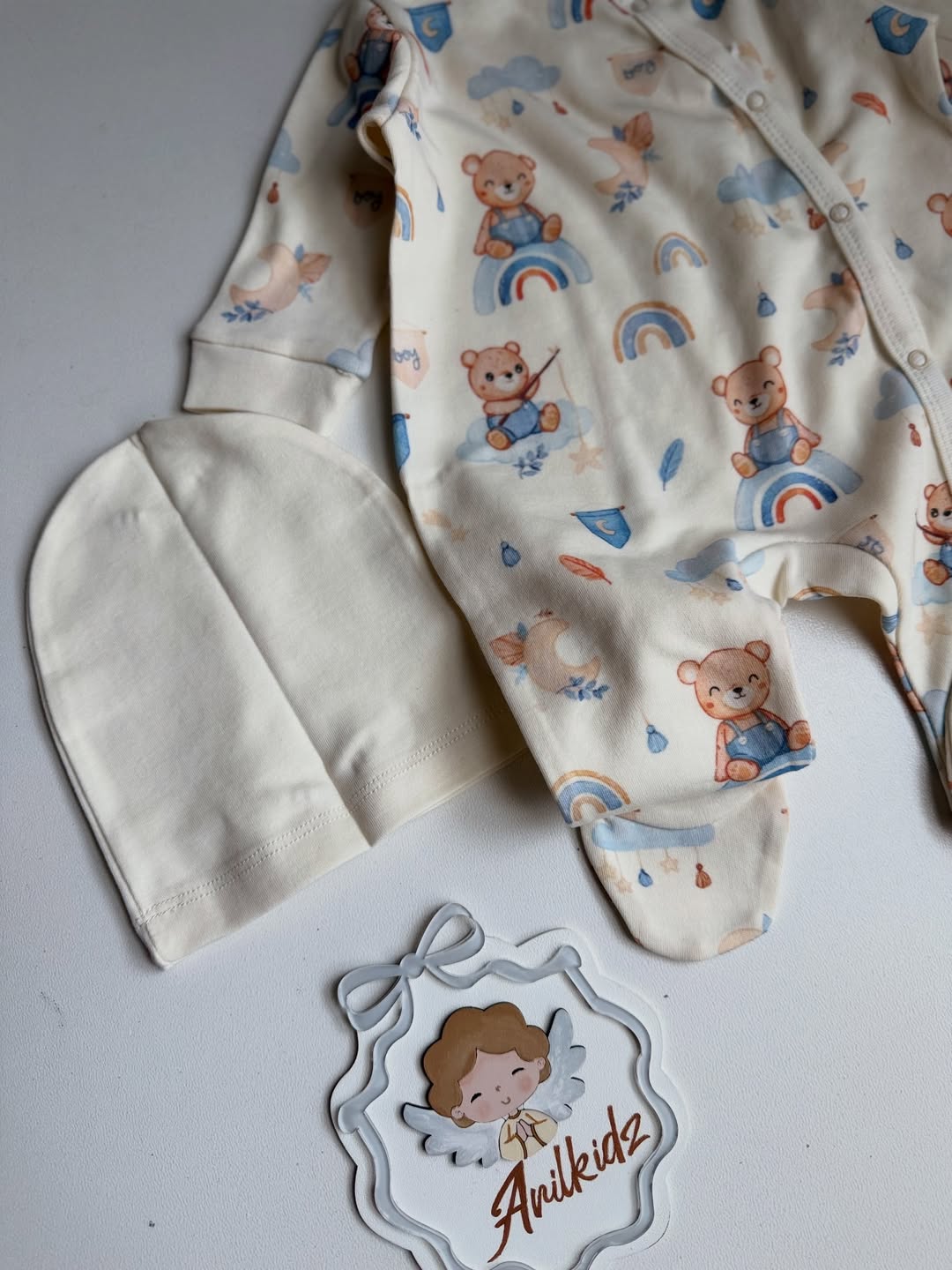 سرهمی ترک برند ایسی بی بی دکمه خور با جوراب همراه کلاهکد۶۱